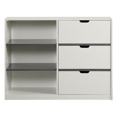 This multifunctional Ratana cabinet is perfect on its own or paired with the matching loft bed (sold separately). The gender-neutral white and gray finish is easy to style around and makes for the ideal place for your little one to store all their clothing and toys. The three open shelves allow them to display their favorite books and toys, while the three ample drawers give them space to keep a clutter-free room. Crafted with high-quality materials and designed to withstand the test of time, this cabinet is not only practical, but also a beautiful piece of furniture that will add charm and character to any room.