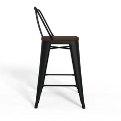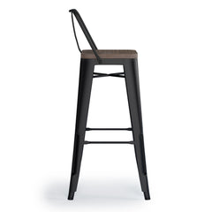 - Features curved back with vertical slat, solid wood seat and cross brace under seat, footrest provides extra stability. Protective rubber floor glides