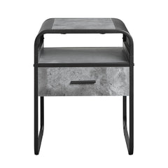 For a low-profile yet stylish addition to your living room, look no further than this modern Raziela end table. This end table has luxurious faux concrete shelving for an on-trend look without the weight. The minimalist metal frame promotes a strong construction, promising to hold up to many years of family get-togethers. Its wide top offers plenty of space for impromptu snack buffets or a few pieces of decor.