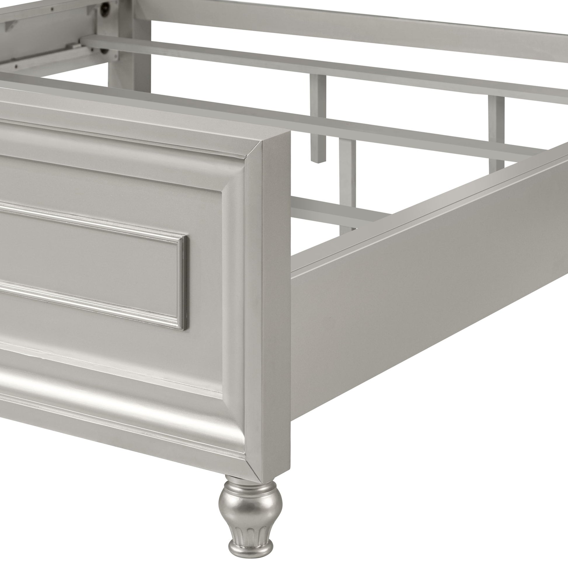 Introducing the Reflection Bed, meticulously crafted for enduring strength and durability with solid Pine and high-quality manufactured wood. Its glamorous matte finish exudes elegance, accentuating the mirrored panel and silver nailhead trim adorning the headboard. Experience sophisticated luxury with shaped crowns, graceful interlocked wood trim, picture frame moldings, and turned bun feet, seamlessly blending classic charm with modern allure. This bed is more than just a piece of furniture—it''s a statement of refined taste and timeless style, destined to transform any bedroom into a sanctuary of comfort and elegance.