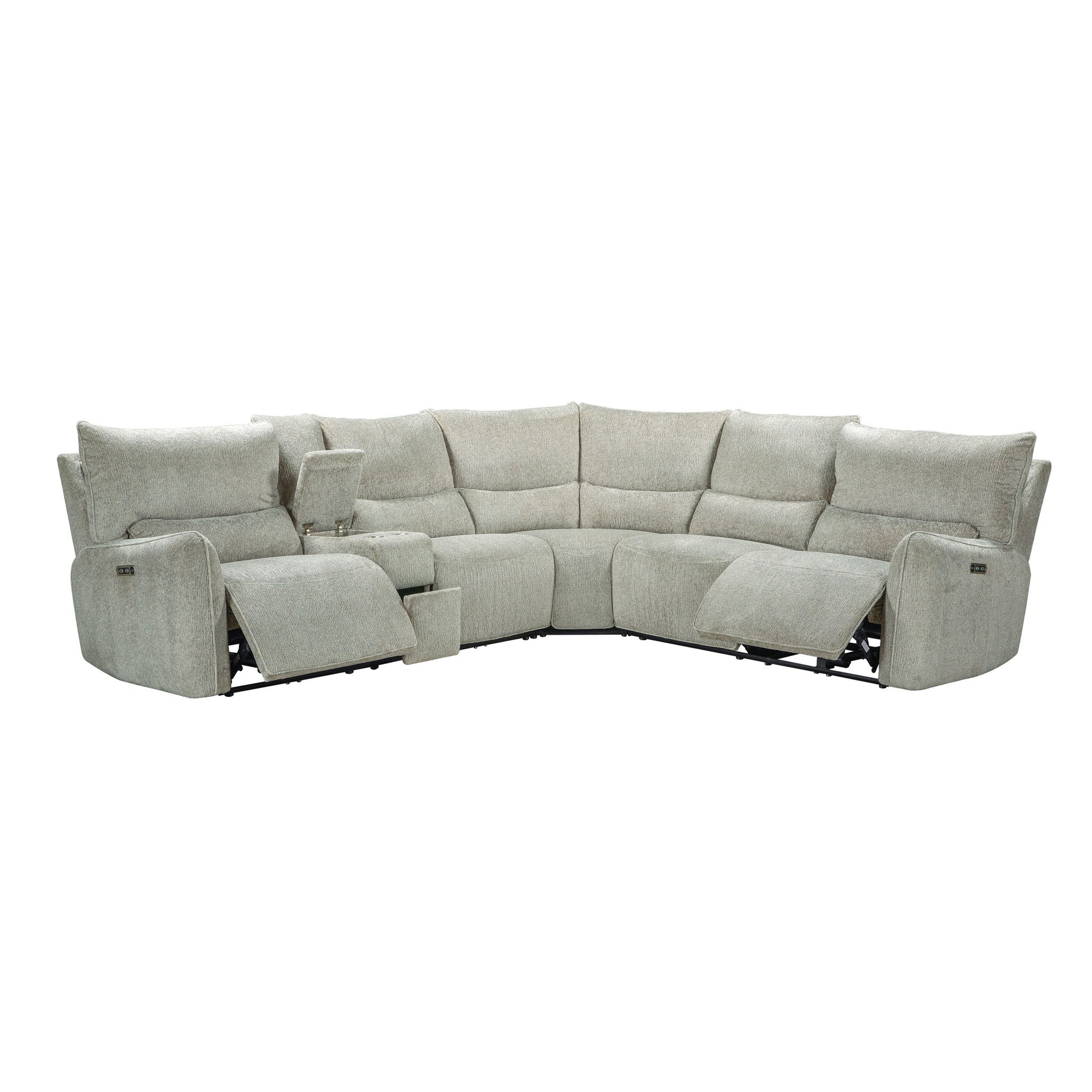 The Remsen Reclining Sectional combines cozy comfort and practical features, making it an excellent addition to any living space. Its soft, textured upholstery, highlighted with tones, is crafted from 100% easy-care polyester for ultimate convenience. The pillow-edged back cushions, paired with lumbar support and softly curved arms, add both comfort and style to its sleek, contemporary design. With three fully upholstered recliners, this sectional provides the perfect spot to relax and recharge. Built with durable hardwood and engineered wood frames, coil spring cushions wrapped in resilient foam, and no-sag seat suspension, this sectional ensures long-lasting comfort and support. Handy lifestyle features such as a center console for storing remote controls and built-in cupholders make it as functional as it is stylish.