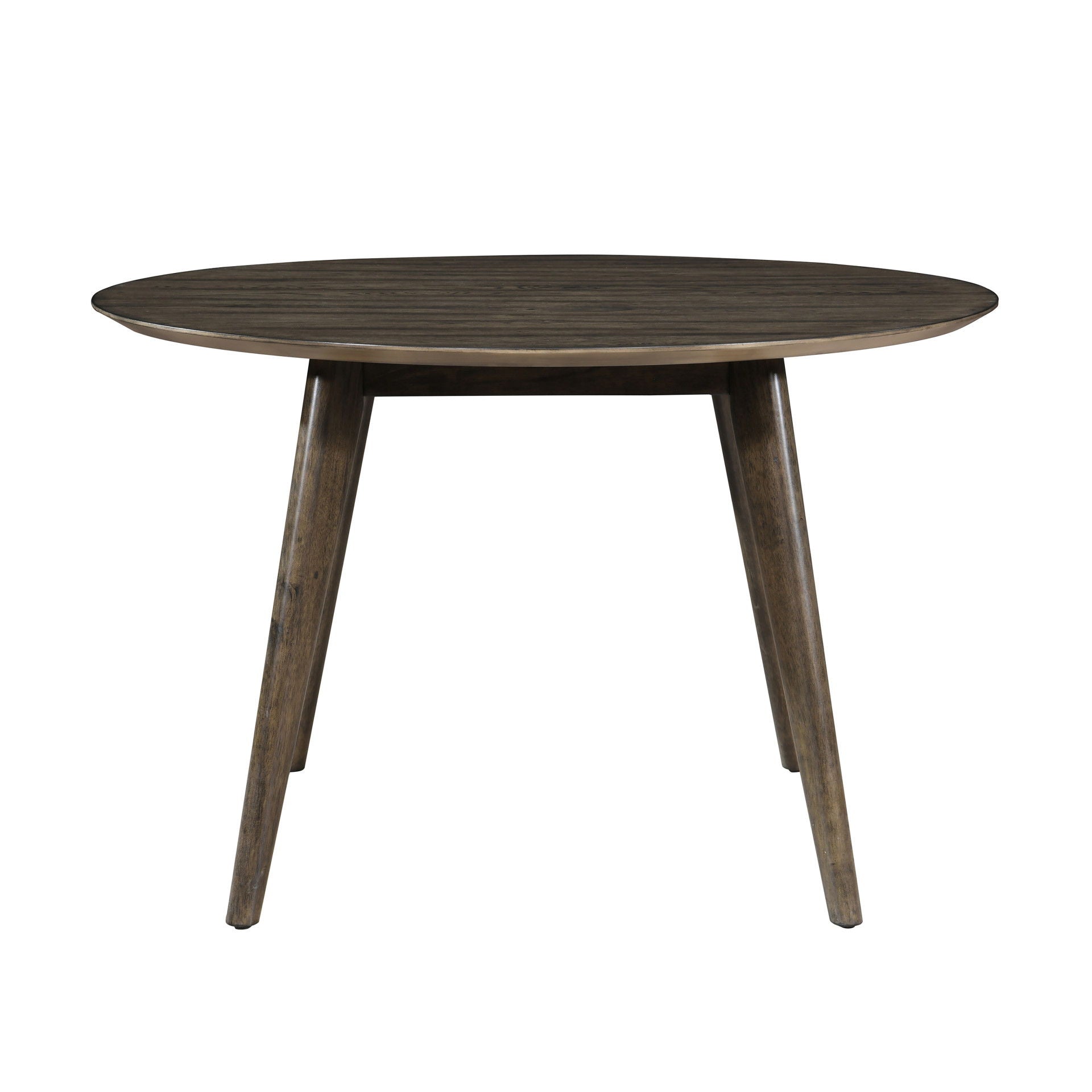 The Rex Mid-Century Modern 48" Round Dining Table in Walnut offers a stylish and practical solution for small space dining. This table, crafted from solid rubberwood, manufactured woods, and oak veneers, ensures exceptional stability and longevity. Its classic mid-century modern design features a minimalist aesthetic with neutral tones, clean lines, rounded edges, and angled, tapered legs, capturing timeless elegance. The multi-step walnut brown finish, hand-rubbed with a clear topcoat, enhances the natural beauty of the wood grain. Perfect for smaller dining areas, this round dining table provides comfortable and stylish seating for four.