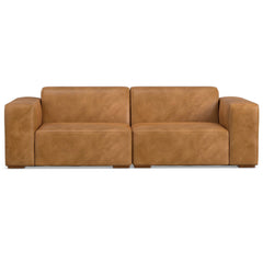 - Handcrafted, modern-style leather sofa with a clean, boxy silhouette is an oversized loveseat for people and an ideal choice for smaller living rooms, apartments, or open-concept condos.