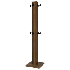 Elevate your home’s organization with this stylish Mid-Century Modern coat rack. Crafted from durable rubberwood, particle board, and metal, this coat rack combines functionality with a sleek design. The walnut melamine paper finish adds a warm, natural touch, while the contrasting black metal hooks with wooden caps offer both style and utility. Perfect for keeping your jackets, hats, purses, belts, and even your pet's leashes neatly stored, this coat rack is a versatile addition to any entryway or bedroom.