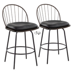 Riley - Claire Farmhouse Fixed Height Counter Stool With Swivel With Round Footrest (Set of 2) - Black / Bronze / Walnut / Brown