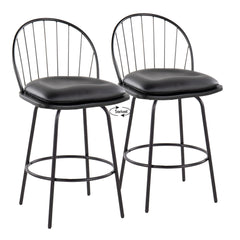 Riley - Claire Farmhouse Fixed Height Counter Stool With Swivel With Round Footrest (Set of 2) - Black
