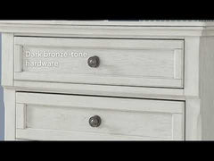 Elegant, timeless furnishings take your bedroom to the next level. Nothing does that better than this dresser. The antiqued white finish with a wonderful grain texture radiates sophistication, while dark bronze-tone knobs add an ornate touch. Felt finishing in the upper drawers rounds out this tasteful piece.
