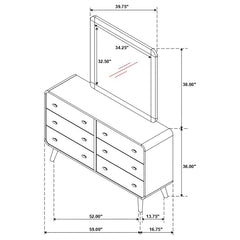 Achieve the perfect blend of style and functionality with this mid-century modern dresser and mirror set. The dresser, constructed with pine, engineered wood, and walnut veneer, features six spacious drawers with felt-lined top drawers for organizing wardrobe essentials. Rounded edges, tapered legs, and a clean silhouette highlight the retro-modern appeal of this timeless duo. The matching mirror completes the set with its sophisticated design and polished details.