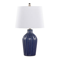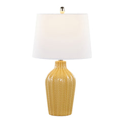 - Stylish Design: The Rockwell Table Lamp features a ceramic body with a glossy chevron pattern and a sleek tapered drum shade, offering a modern aesthetic that adds a pop of color to any room.