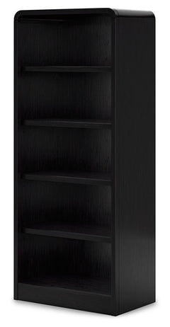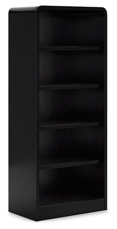 Inspired by art deco design, this softly shaped bookcase makes a lasting impression in a simply stunning way. Its magnificent curved silhouette is enhanced by a rich layered black finish on the textured wood grain surface. Complete with shelves to display items that make you smile, this is the statement piece you’ve been looking for to elevate your contemporary decor.