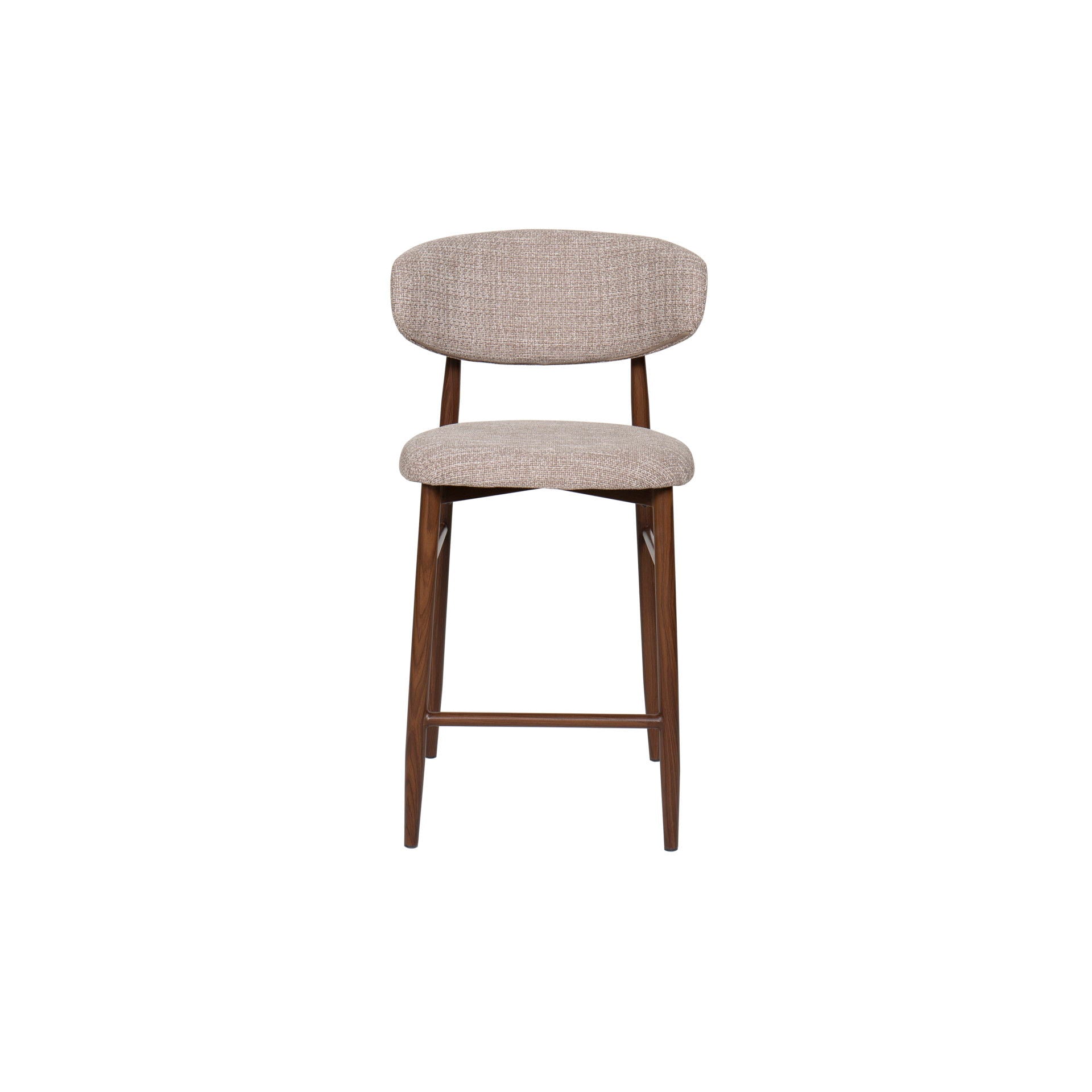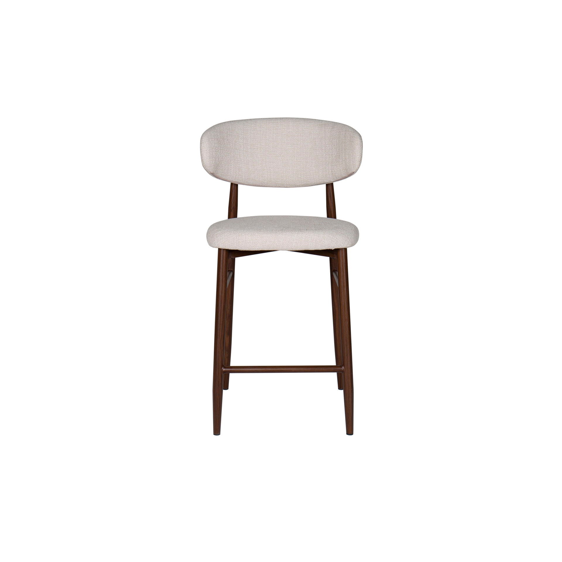 The Royce Counter Chair set offers a stylish and practical seating solution with a distinct mid-century modern flair. Each set includes two counter height chairs featuring a gracefully curved back and sleek, low-profile design that adds a refined touch to any dining or living space. The soft, woven fabric is made from 100% polyester, offering a luxurious feel while being easy to maintain, perfect for everyday use. The sturdy metal seat frame, finished with an eco-friendly heat transfer process, replicates the look of walnut wood, combining a sophisticated appearance with long-lasting durability. With its blend of mid-century modern design, comfort, and resilience, the Royce Counter Chair is an excellent choice for those seeking a timeless and functional seating option.