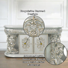 Whether you're hosting a dinner party or looking for additional storage solutions, this Sandoval server with a champagne finish offers both style and functionality. Enhancing the server's visual appeal are decorative scrolls on the base. These intricately crafted scrolls showcase delicate detailing and add a touch of artistry to the server's design. They create a sense of movement and elegance, elevating the server's aesthetic appeal. Designed for practicality, the server features three drawers, providing ample storage space for your dining essentials, such as cutlery, napkins, or serving utensils. The drawers are thoughtfully designed to glide smoothly, allowing easy access and efficient organization of your belongings. In addition to the drawers, the server offers lower cabinet space. This cabinet space provides a versatile storage option for larger items, such as table linens, serving platters, or glassware.