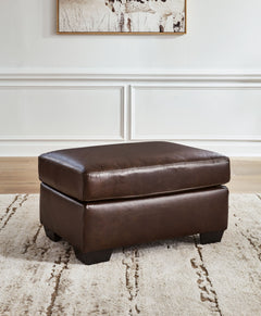 Whether your inspiration is contemporary or classic, this ottoman's good looks and affordable luxury are hard to deny. Its clean-lined silhouette and skillfully matched leather and faux leather upholstery offer a transitional sensibility that's right at home in your home. Kick back and relax in comfort.