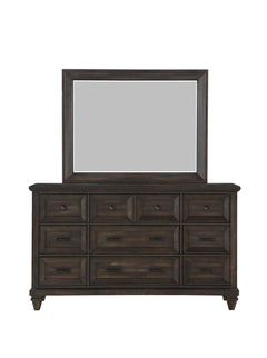The Sevilla Dresser Mirror in brown is a perfect blend of timeless craftsmanship and versatile design, making it an elegant addition to any bedroom. Skillfully crafted from solid Acacia wood and Acacia veneers, this mirror features a rich walnut finish that has been meticulously hand-distressed, giving it a warm, vintage appeal. The mirror's frame, designed with extra-wide picture frame moldings, beautifully encases crystal-clear, low-distortion beveled glass, providing a flawless reflection and impeccable functionality. Its robust construction and substantial presence command attention, while the rich wood tones enhance a cozy, inviting ambiance. Ideal for classic, rustic, or historically inspired spaces, this mirror is designed to complement the matching dresser, serving as a captivating focal point in any room.