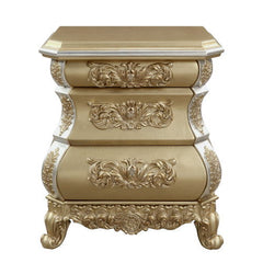 Intricately hollow carved design with romantic scrolling accent highlights this extraordinary style. The Seville Bedroom Collection creates opulence and drama in your room with the dazzling gold hue that enhances its detailed extravagance. Button tufted headboard and footboard add depth and a luxurious sense of comfort. Matching casegoods offer self-closing drawers with built-in safety stops and felt-lining. Show your confidence and make a bold statement in your personal space with the Seville Bedroom Collection.
