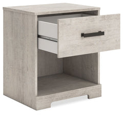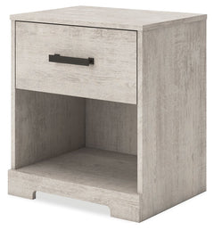 Give casual a new meaning with the chic look of this nightstand. A light gray finish over replicated oak grain keeps it laid-back and inviting, while the substantial warm pewter-tone hardware adds a modern farmhouse touch. The open cubby provides display space or accommodates a storage bin to add a delightfully relaxed vibe to your inner sanctum.