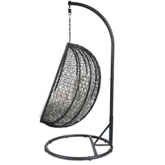 Simona - Hanging Chair - Beige Fabric & Black Wicker