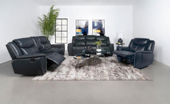 Sloane - 3 Piece Upholstered Reclining Sofa Set - Blue