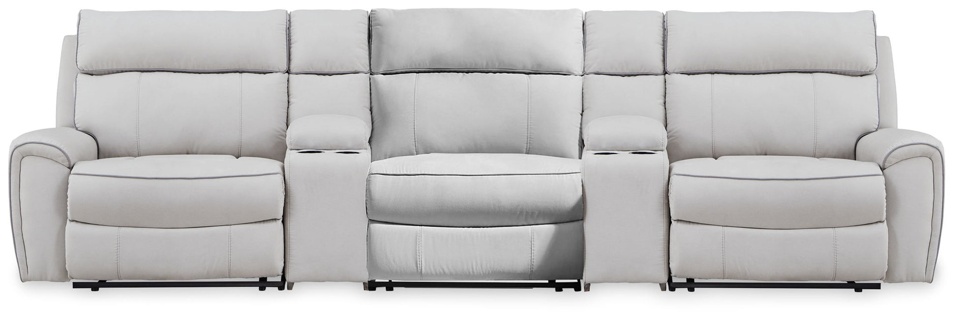 Social Pointe - 6-Piece Power Reclining Sectional With Storage Console - Pearl / Ash