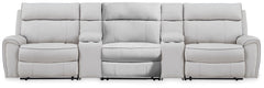Social Pointe - 5-Piece Power Reclining Sectional - Pearl / Ash