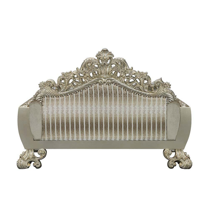 Sorina - Loveseat With 5 Pillows - Velvet, Fabric & Antique Gold