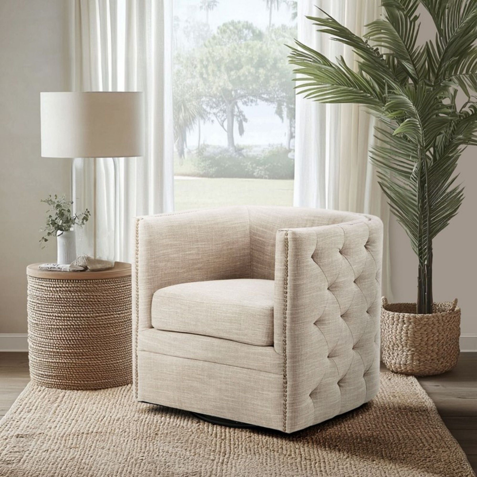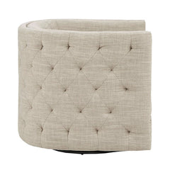 Swivel Chair With Tufted Barrel Design And Nailhead Accents - Cream