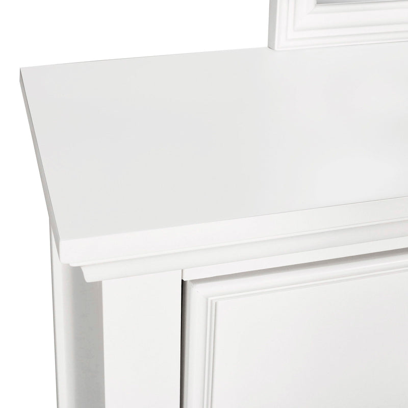 The Tamarack Mirror offers a perfect blend of durability and style. Crafted with a combination of solid poplar, basswood veneers, and eco-friendly manufactured wood, this mirror ensures strength and long-lasting durability. Its versatile transitional design combines contemporary clean lines with classic paneled detailing, seamlessly blending modern and traditional aesthetics. The sleek finish adds a touch of sophistication and modernity, enhancing the overall aesthetic and complementing any decor style. Experience a true and clear reflection with our premium low-distortion glass mirror, providing both function and elegance.