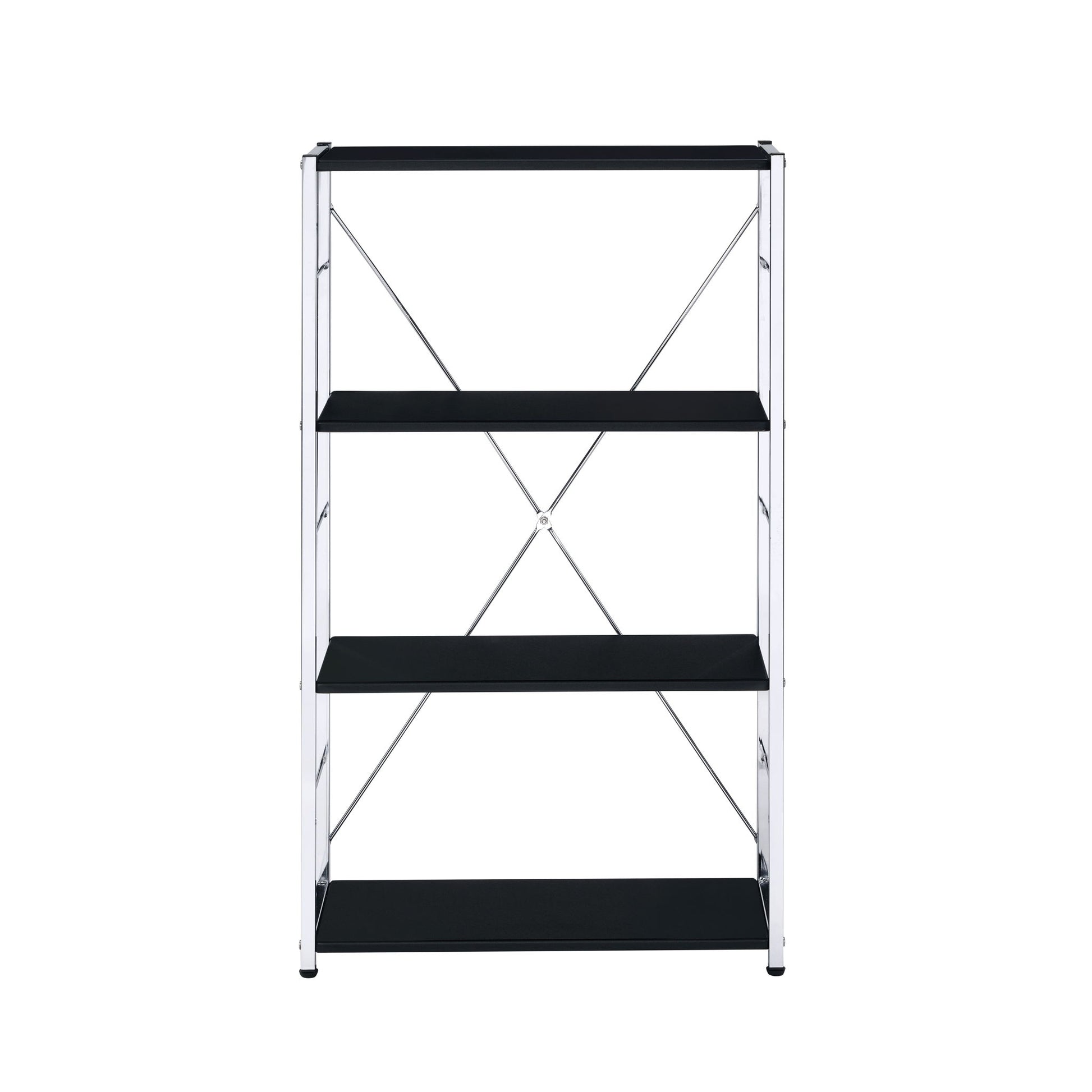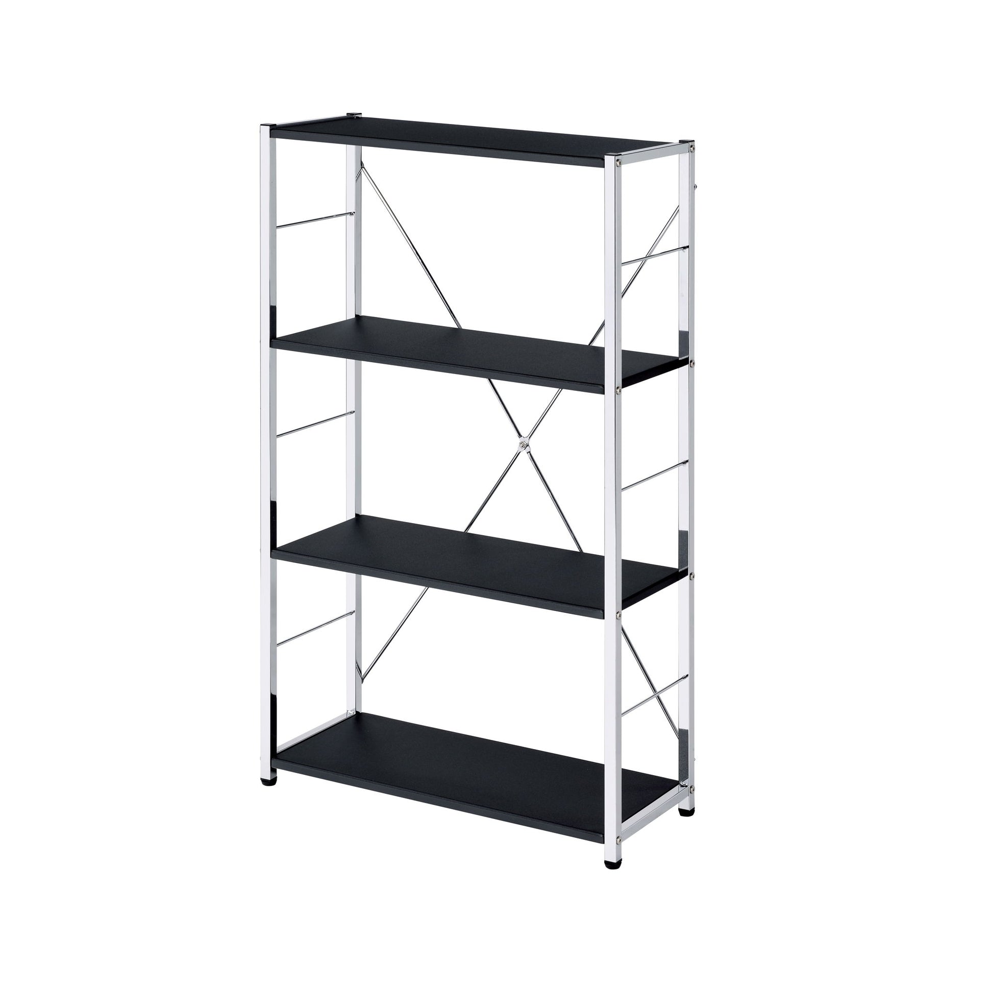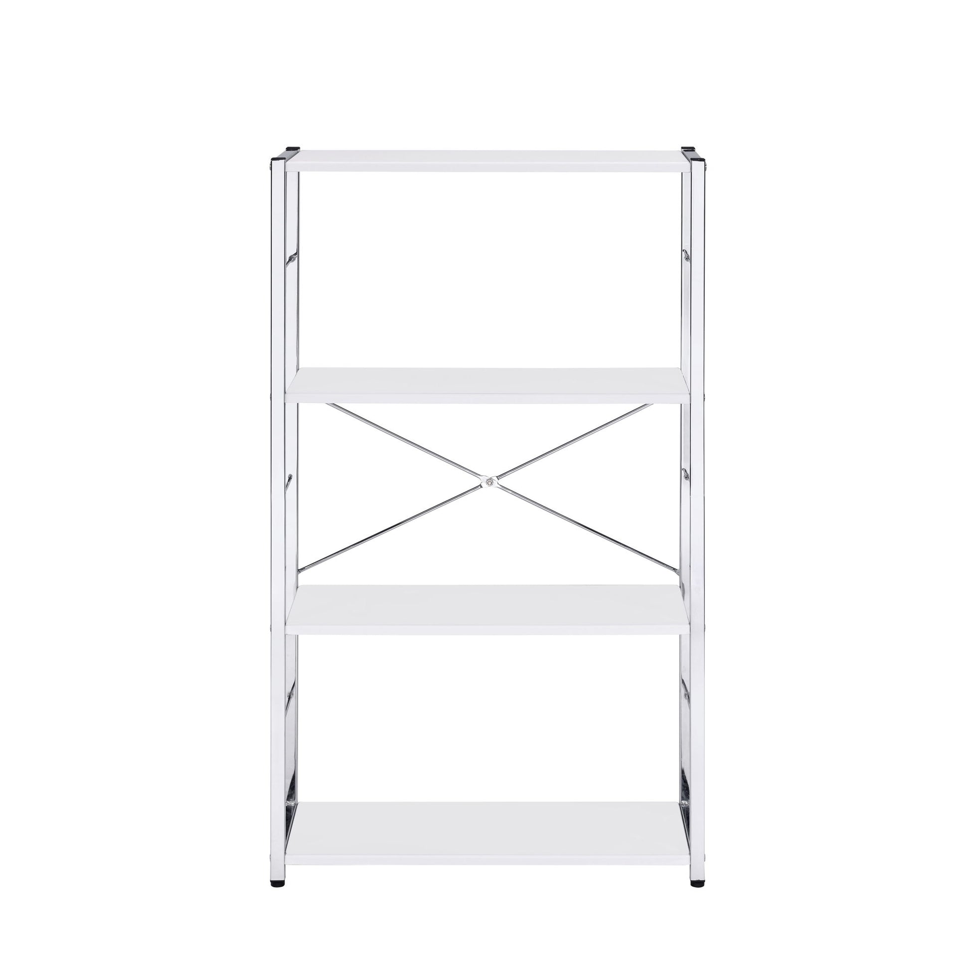 Rectangular BookshelfModern Concise Design Chrome Metal Frame X-Shape Cross Bar4 Tier Shelf Book Case