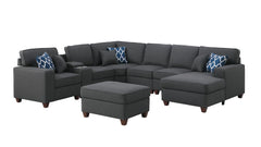 Tina - 8 Piece Upholstered Sectional With Ottoman - Dark Gray