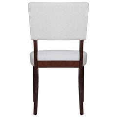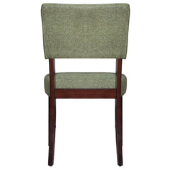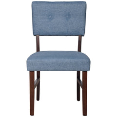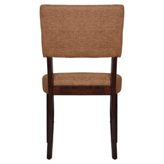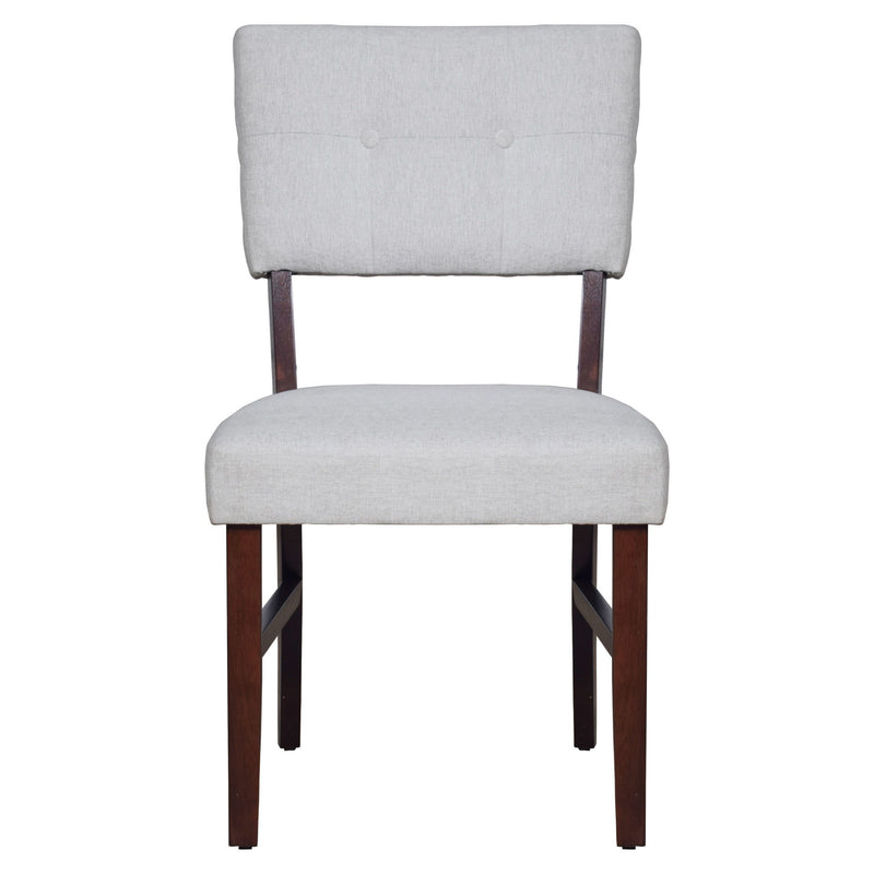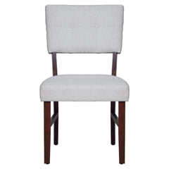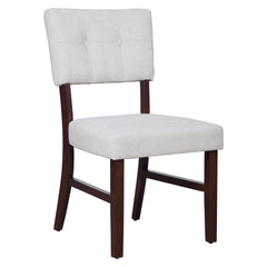 The Tioga Dining Chairs, available in sets of two, bring durable craftsmanship and modern style to your dining space. Each chair is constructed from solid Rubberwood and reinforced with base stretchers, ensuring strong and stable support. With clean lines, a minimalist approach, smooth surfaces, and geometric shapes, these chairs contribute to a sleek contemporary aesthetic. The warm Cherry finish enhances the natural beauty and grain patterns of the wood, adding a touch of elegance. Comfortable seating is assured with button-tufted padded backrests and resilient foam cushions covered in easy-care, 100% polyester fabric. Perfect for any dining room, these chairs combine style, comfort, and durability for an unparalleled dining experience.