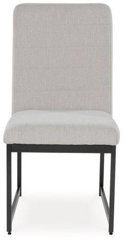 Sleek in its simplicity, this upholstered dining chair takes a relaxed approach to refinement. The mixed-material design brings a trendy urban-chic feel to dinner time. And with a cushioned seat upholstered in a light beige fabric, you stay comfortable as you dine.
