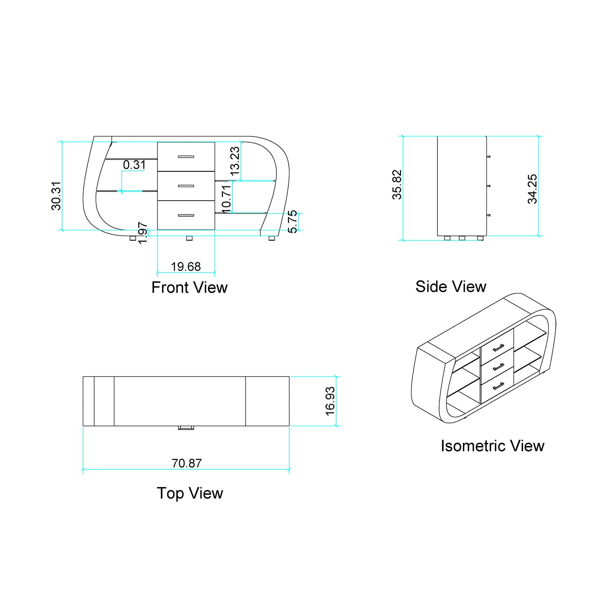 - Spacious Storage: Features open shelves and three storage drawers for ample organization