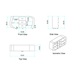 71.0"W x 17.0"D x 36.0"H - 190.0 lb