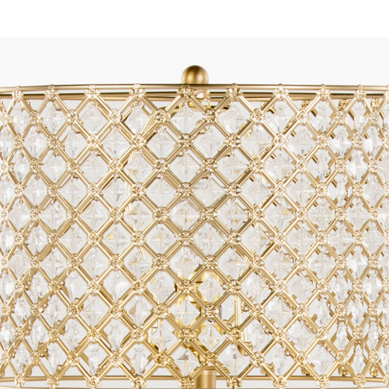 - Crystalline Shade: Topped with a crystalline metal shade, this lamp casts a radiant display of cascading patterns, adding a touch of glamour to your living spaces.