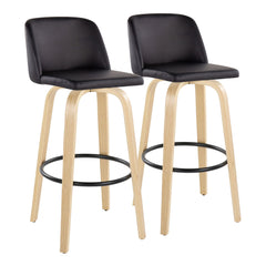 Toriano - Contemporary Fixed Height Barstool With Swivel With Round Footrest (Set of 2) - Natural / Black