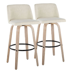 Toriano - Fixed Height Barstool With Round Footrest (Set of 2) - White Washed / Cream