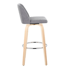 Toriano - Contemporary, Fixed Height Barstool With Swivel With Round Footrest (Set of 2) - Natural / Gray