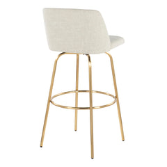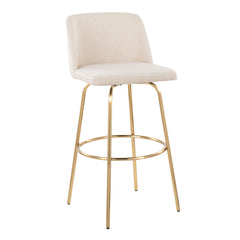 Toriano - Contemporary Fixed Height Barstool With Swivel & Round Footrest (Set of 2) - Cream / Gold
