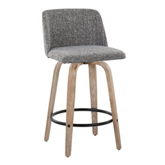 Toriano - Mid-Century Modern Fixed Height Counter Stool With Swivel With Round Footrest (Set of 2) - White Washed / Gray