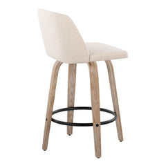 Toriano - Mid-Century Modern Fixed Height Counter Stool With Swivel With Round Footrest (Set of 2) - White Washed / Cream