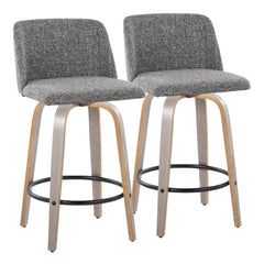 Toriano - Contemporary Fixed Height Counter Stool With Swivel With Round Footrest (Set of 2) - Light Gray / Gray