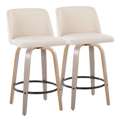 Toriano - Contemporary Fixed Height Counter Stool & Swivel And Round Footrest (Set of 2) - Light Gray / Cream