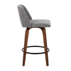 Toriano - Mid-Century Modern, Fixed Height Counter Stool With Round Footrest (Set of 2) - Walnut / Gray / Black