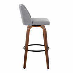 Toriano - Mid-Century Modern Fixed Height Barstool With Swivel And Round Footrest (Set of 2) - Walnut / Gray