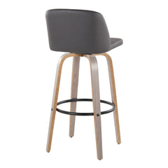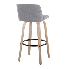 Toriano - Mid-Century Modern Fixed Height Barstool With Swivel With Round Footrest (Set of 2) - White Washed / Gray