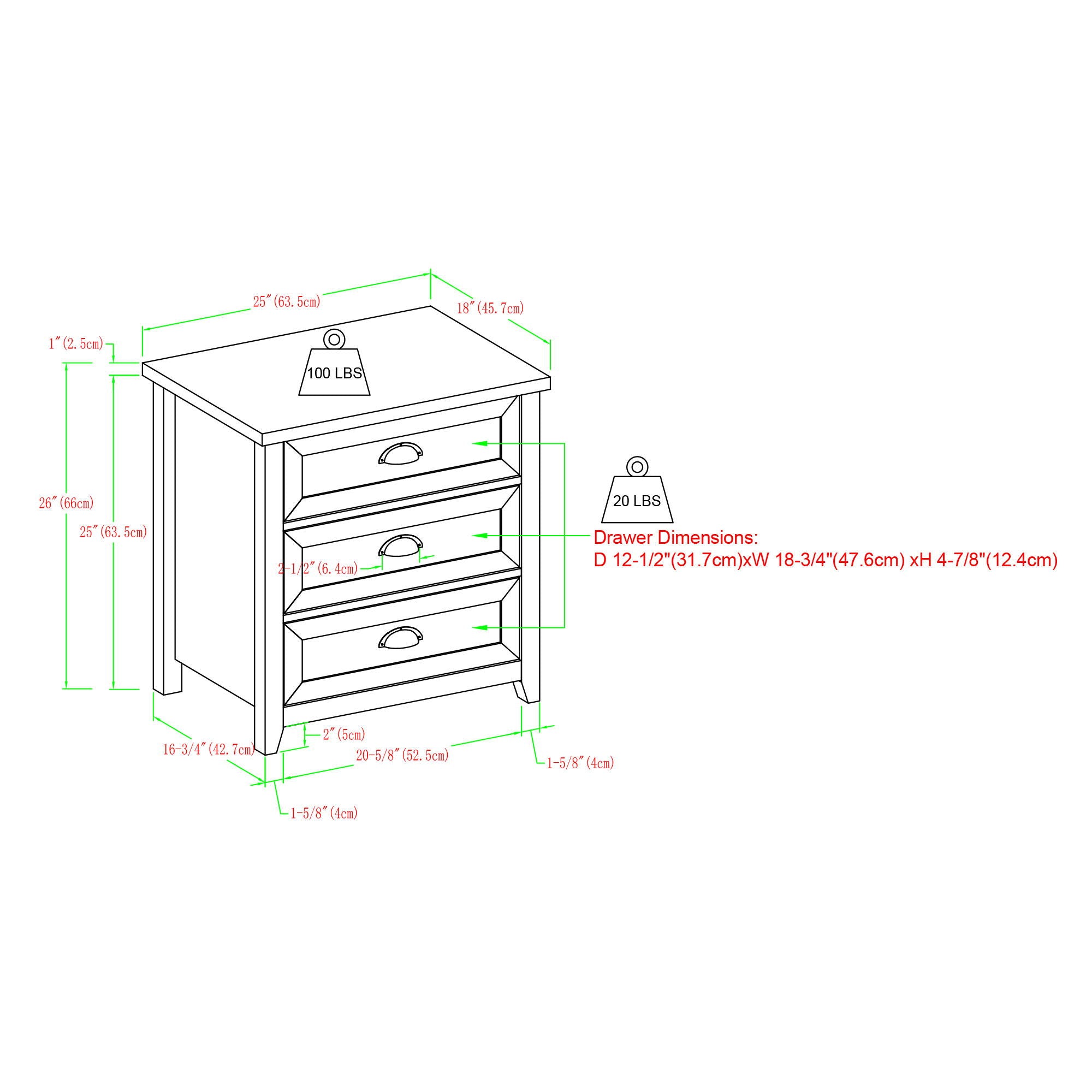Transitional Farmhouse Framed 3 Drawer Nighstand With Cup Handles