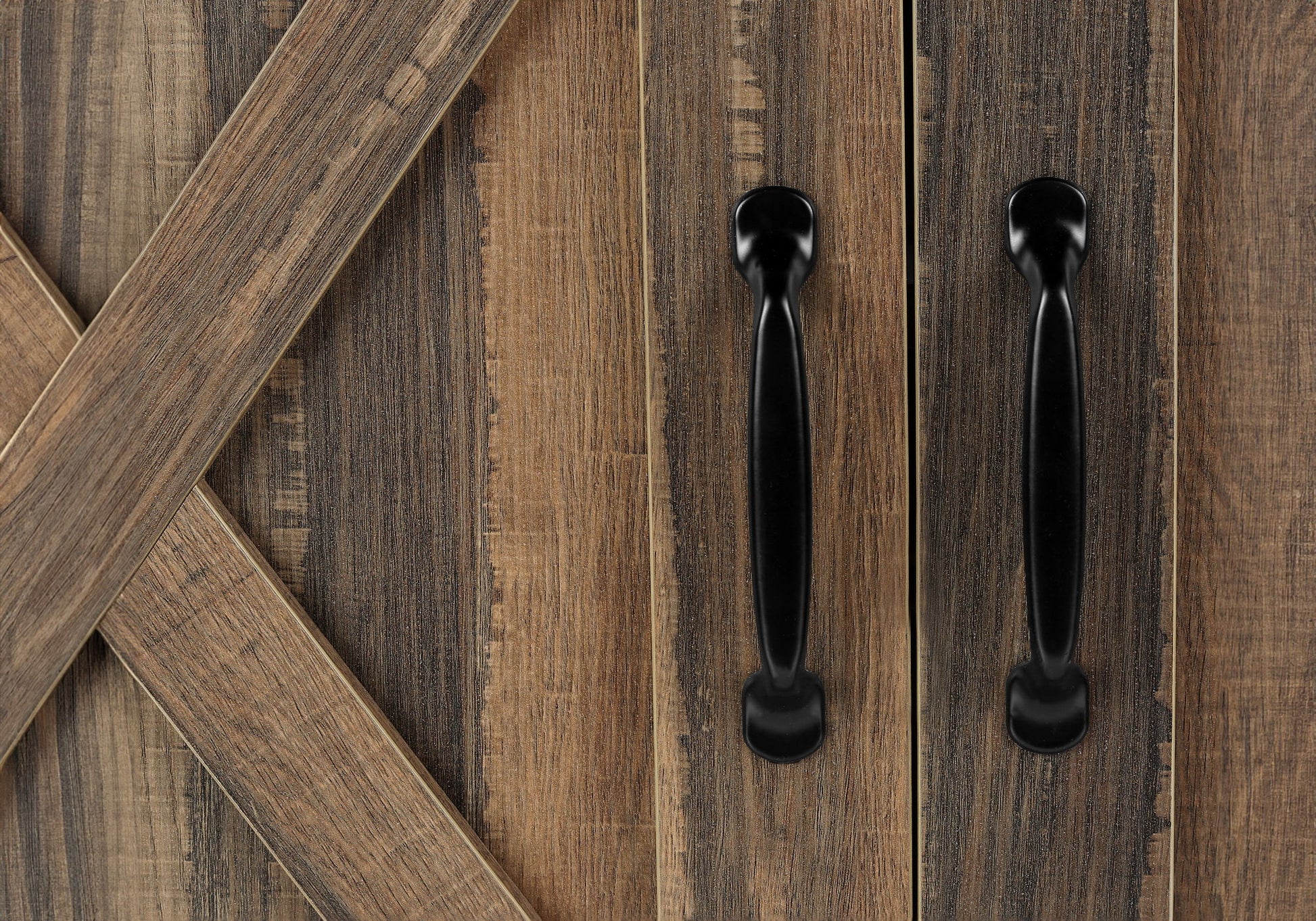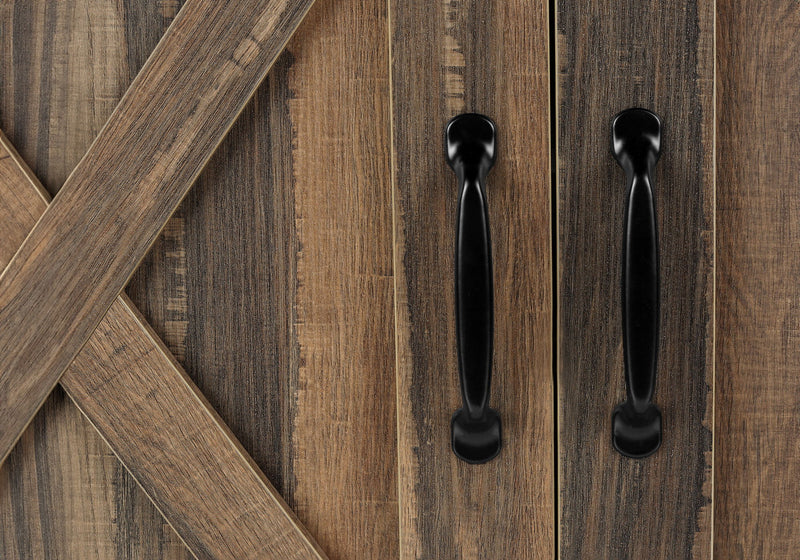 - Sliding Doors: Equipped with two barn-style sliding doors that glide along a metal track, providing easy access and a rustic charm. The doors include metal handles for a cohesive look.