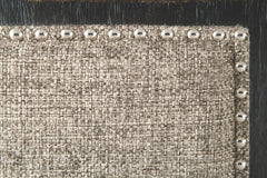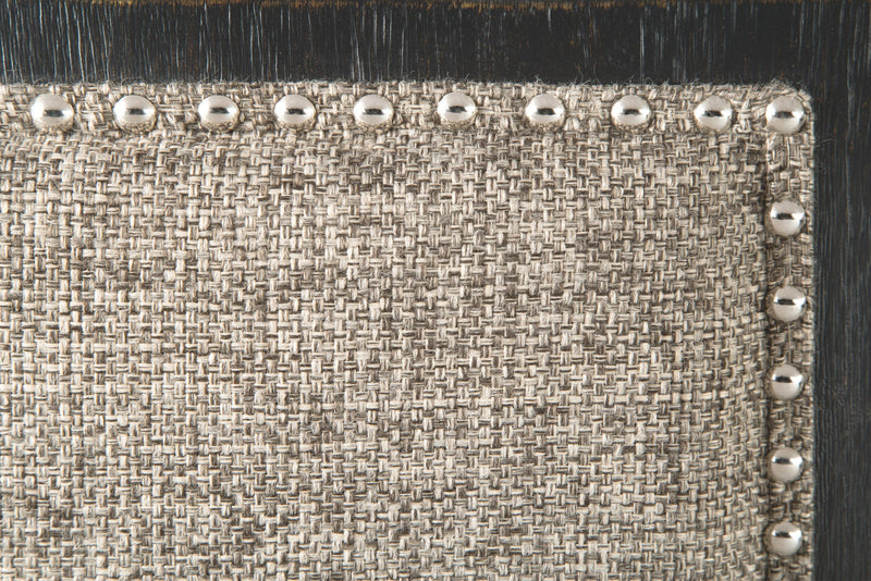 Invite your family into the heart of your home with this upholstered dining room bench. Its tapered legs provide a sturdy foundation, while the counter height design raises the bar on fine dining. With a textured black finish and heavy woven upholstery accented with silvertone nailhead trim, this is trend-right urban farmhouse style without all the fuss.