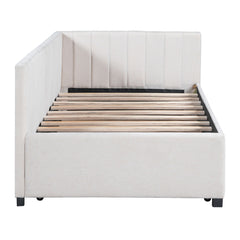 Twin Size Sofa Bed Upholstered Daybed With Trundle Frame No Box Spring Needed, Linen - Beige