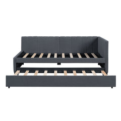 Upholstered Daybed With Trundle Twin Size Sofa Bed Frame No Box Spring Needed, Linen - Gray